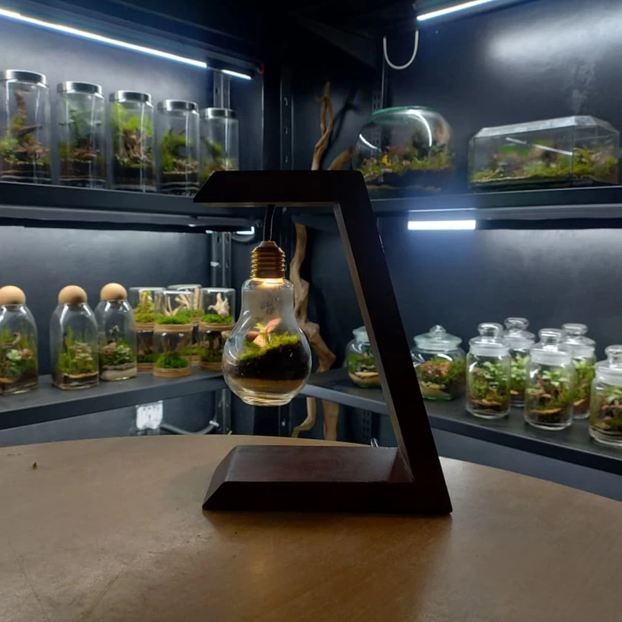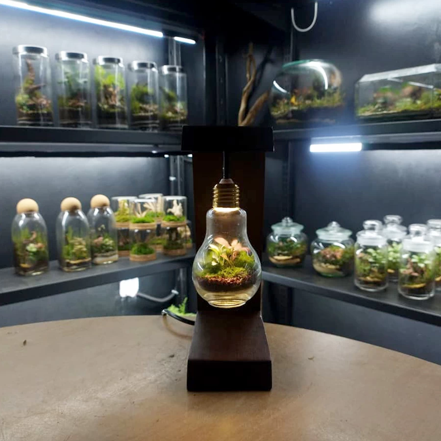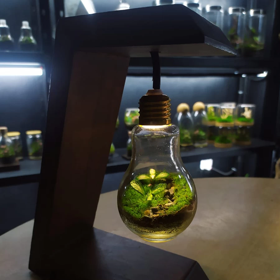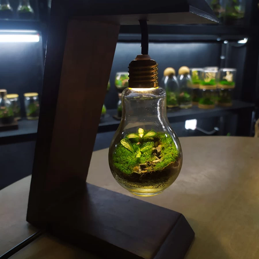 living space with the Light Bulb Terrarium by Arriums — where art