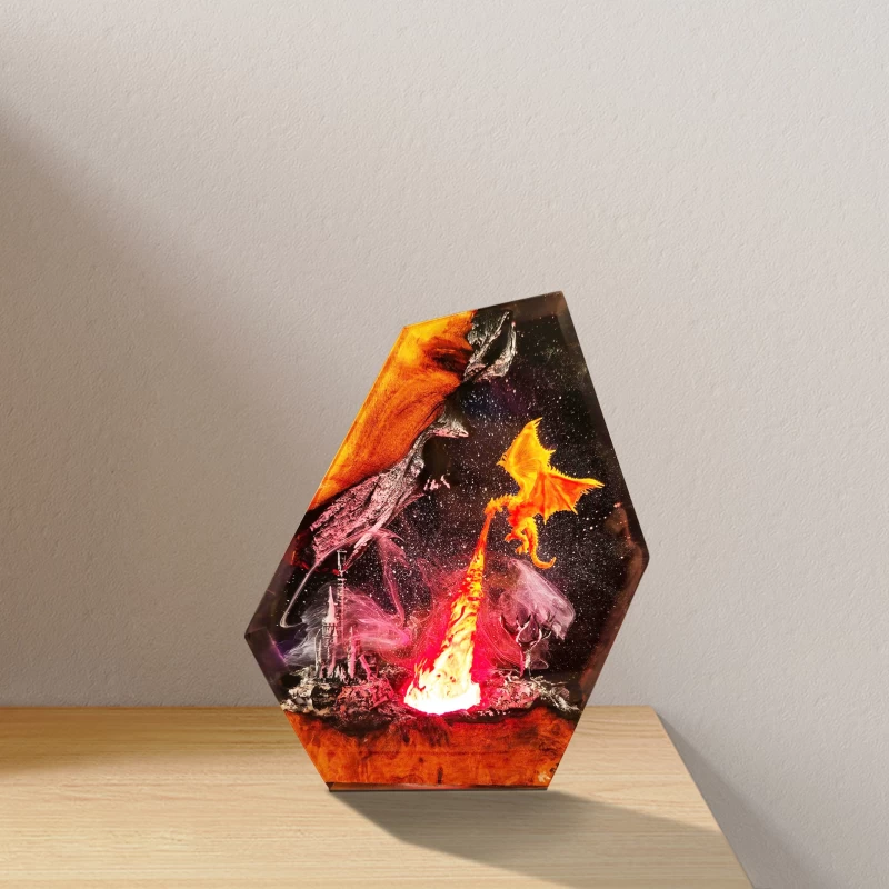 Immerse yourself in a fiery, mythical battle with this Fantasy Dragon Battle LED Light Sculpture. Featuring two dragons battling over a fiery volcano with a glowing lava flow, this vibrant sculpture captures the power and majesty of these legendary creatures. The colorful LED lights enhance the dynamic scene, creating an enchanting glow that brings the dragons and the fiery landscape to life. Perfect for fantasy enthusiasts, dragon lovers, or anyone seeking a bold, dramatic decor piece for their home or office.